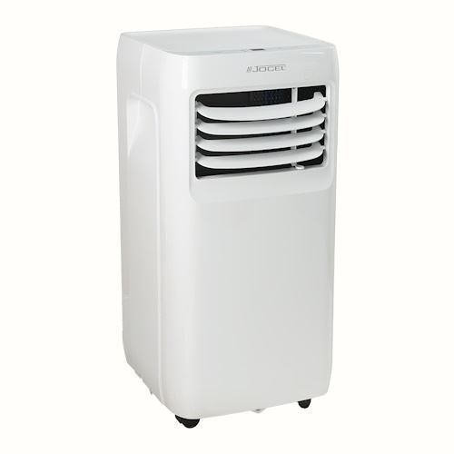 Suporta melhor os dias quentes de verão, mantendo as divisões da tua casa sempre frescas! Ar condicionado portátil, em branco, da Jocel. Funções Frio, Desumidificador, e Ventoinha. Capacidade de arrefecimento máximo de 9000 BTU, 2.6 Kw. Insere-se na classe de eficiência energética A, e apresenta uma ventoinha com 2 velocidades. Destaque pelo nível de ruído de apenas 63 dB e incluí comando à distância. Para além disto, conta com uma velocidade máxima de volume de ar de 295 m3 por hora, compressor rotativo e temporizador. Ideal para uma divisão de12 até 18 m2. Tem um consumo de potência/ ampere 1000W/4.35A. Tem também a capacidade de remoção de humidade 2.26L/H Dimensões caixa (AxLxP) 870 x 400 x 380mm